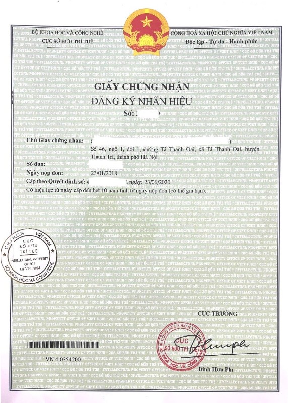 Được độc quyền sử dụng nhãn hiệu trên toàn lãnh thổ Việt Nam trong thời hạn hiệu lực của giấy chứng nhận đăng ký;